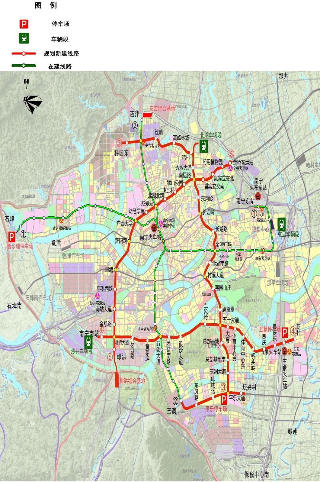 南寧市城市軌道交通近期建設規劃(2015~2021年)示意圖